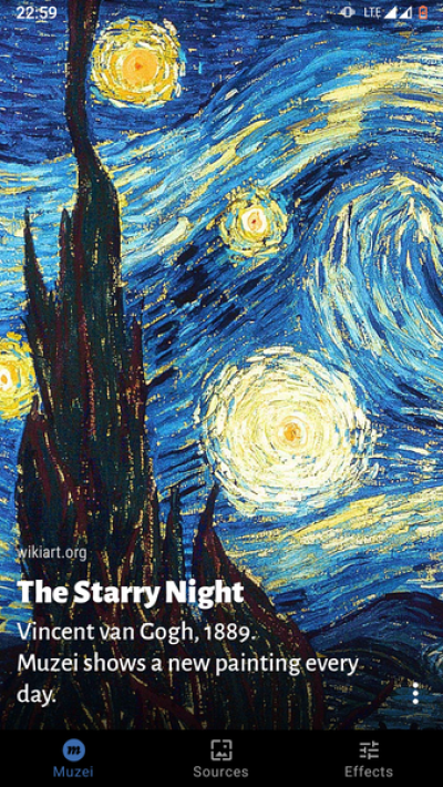 Muzei - это живые обои, которые ежедневно мягко освежают ваш домашний экран знаменитыми произведениями искусства. Кроме того, они отступают на задний план, размывая и затемняя картины, чтобы ваши иконки и виджеты оставались в центре внимания. Просто дважды коснитесь обоев или откройте приложение Muzei, чтобы насладиться и исследовать произведения искусства во всей их красе.