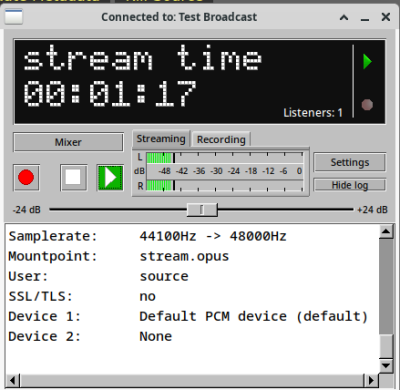 Если вы слышите свой поток, значит Icecast работает.