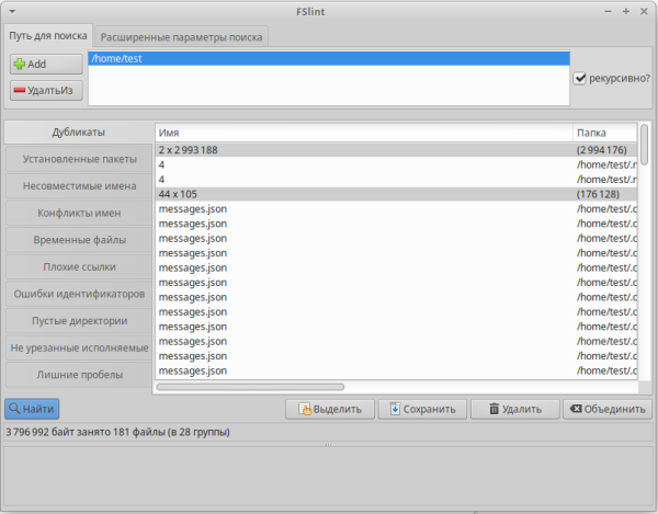 Вот как выглядит FSlint GUI.