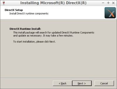Нажмите «Next», чтобы установить компоненты среды выполнения DirectX.