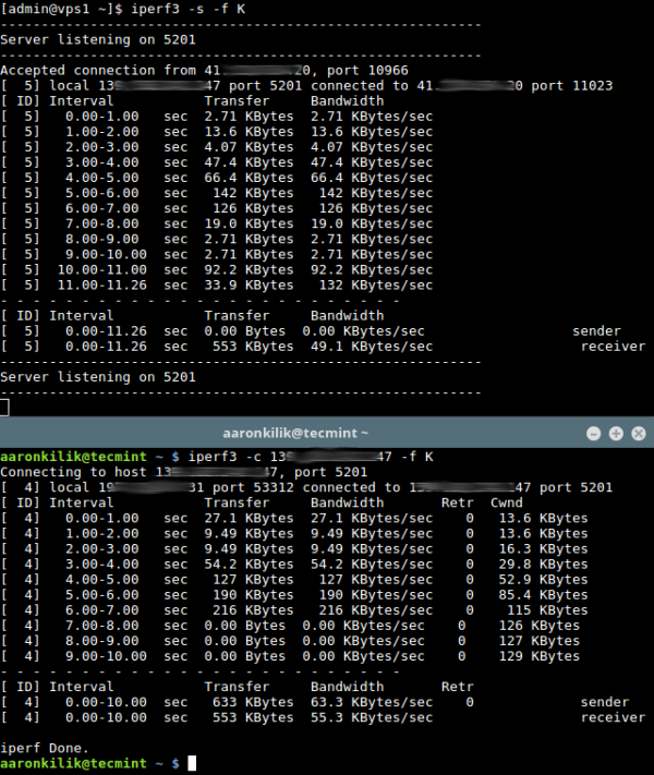 $ sudo apt install iperf3 #Debian/Ubuntu $ sudo yum install iperf3 #RHEL/CentOS $ sudo dnf install iperf3 #Fedora 22+