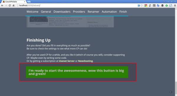 Наконец, запустите демон CouchPotato, используя команду: