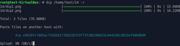 dcp создаст архив данных для указанного набора файлов или каталогов и используя сгенерированный открытый ключ, позволит вам загрузить указанный архив с другого хоста.