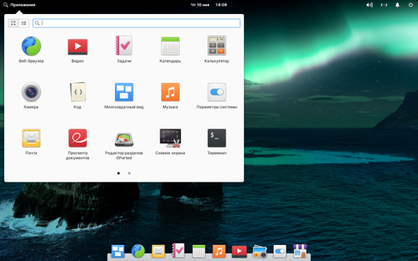 Он поставляется с Gnome, поэтому у вас не будет проблем с расположением всех элементов экрана. На главном экране присутствуют:
