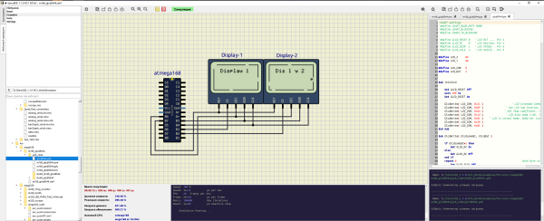 Разумеется, простые схемы — это не просто соединение резисторов, конденсаторов и катушек индуктивности. Вам также может понадобиться секция управления или интегральная схема (ИС). Чтобы упростить разработку таких систем, SimulIDE обеспечивает поддержку моделирования с использованием микроконтроллеров.