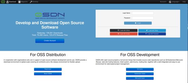 Более 55 000 проектов пользуются услугами OSDN. Как конечный пользователь, вы можете использовать OSDN для поиска и загрузки программного обеспечения с открытым исходным кодом. На странице загрузки есть список категорий программного обеспечения, которые вы можете просмотреть и загрузить.