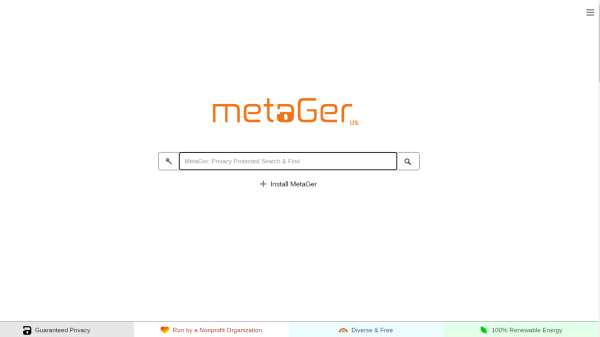 MetaGer - еще одна метапоисковая система с открытым исходным кодом. Однако, в отличие от других, она более серьезно относится к конфиденциальности и использует сеть Tor для анонимного доступа к результатам поиска с различных поисковых систем. MetaGer утверждает, что ее серверы работают на 100% возобновляемой энергии.